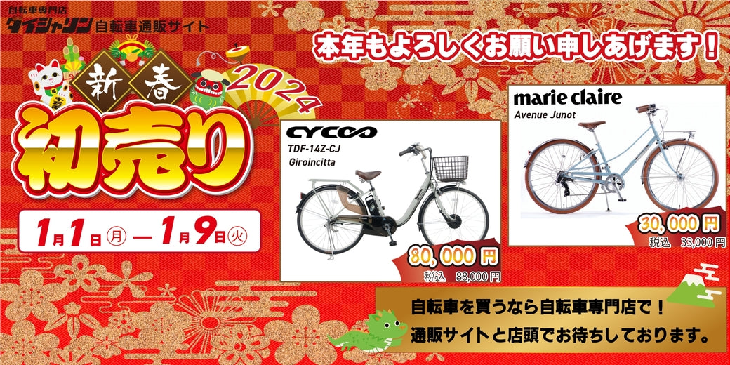 🎉 2024年お正月初売りセール開催中!新春特別価格でお得に自転車ライフをスタートしよう! 🚴♂️🚴♀️