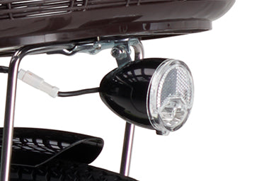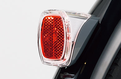 リフレクター一体型で、前方から足元までを広範囲を照らすフロントライト